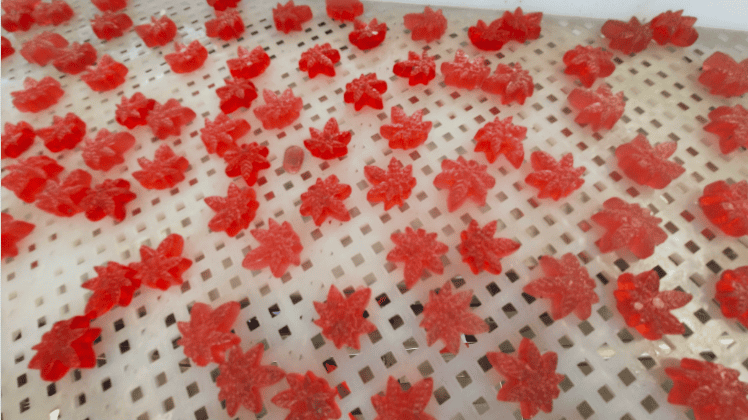 Additionally, the system includes an oil-spraying machine that lightly coats the candy molds, significantly improving the demolding process. This feature not only enhances production efficiency but also ensures that the candies retain their shape and finish, reducing the risk of damage or defects during removal.