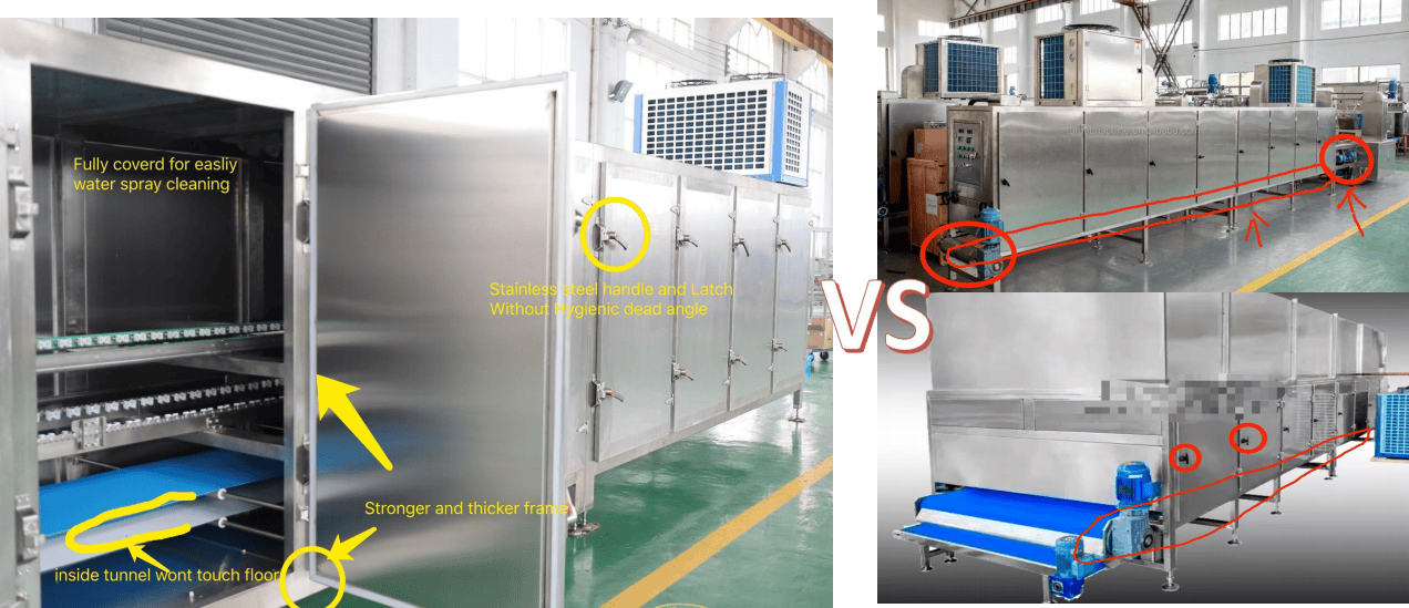 - Fully Covered Tunnel Transfer Belt: The tunnel transfer belt runs fully enclosed, preventing it from coming into contact with the floor. This feature helps maintain a clean environment and reduces the risk of contamination.