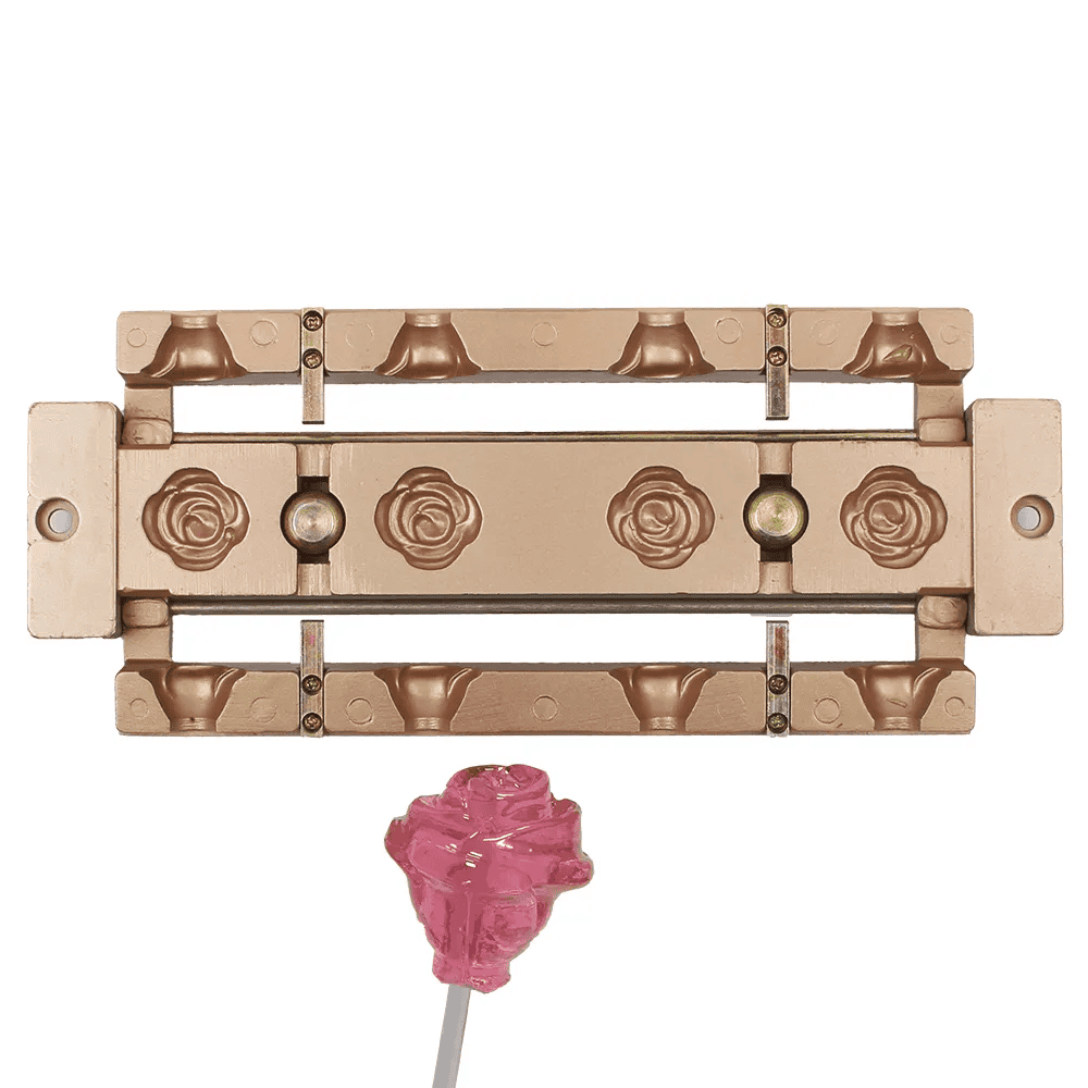 ロリポップ: Integrated molding of custom handles + spherical candy bodies, requiring seamless parting lines.