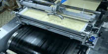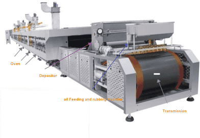 2. Depositing onto Steel Belt: The batter is deposited onto a steel belt, which transports it into the oven for baking.